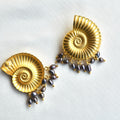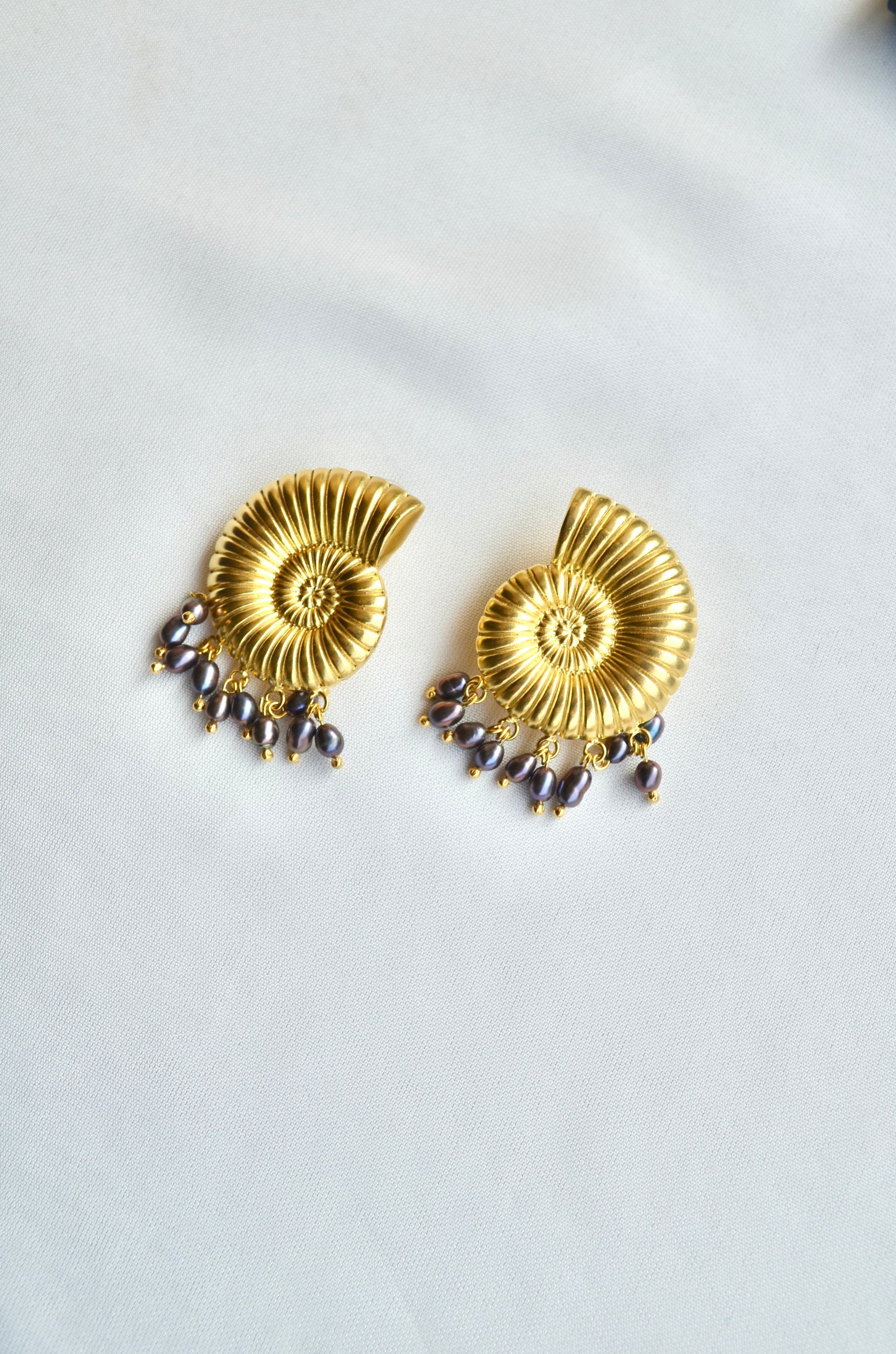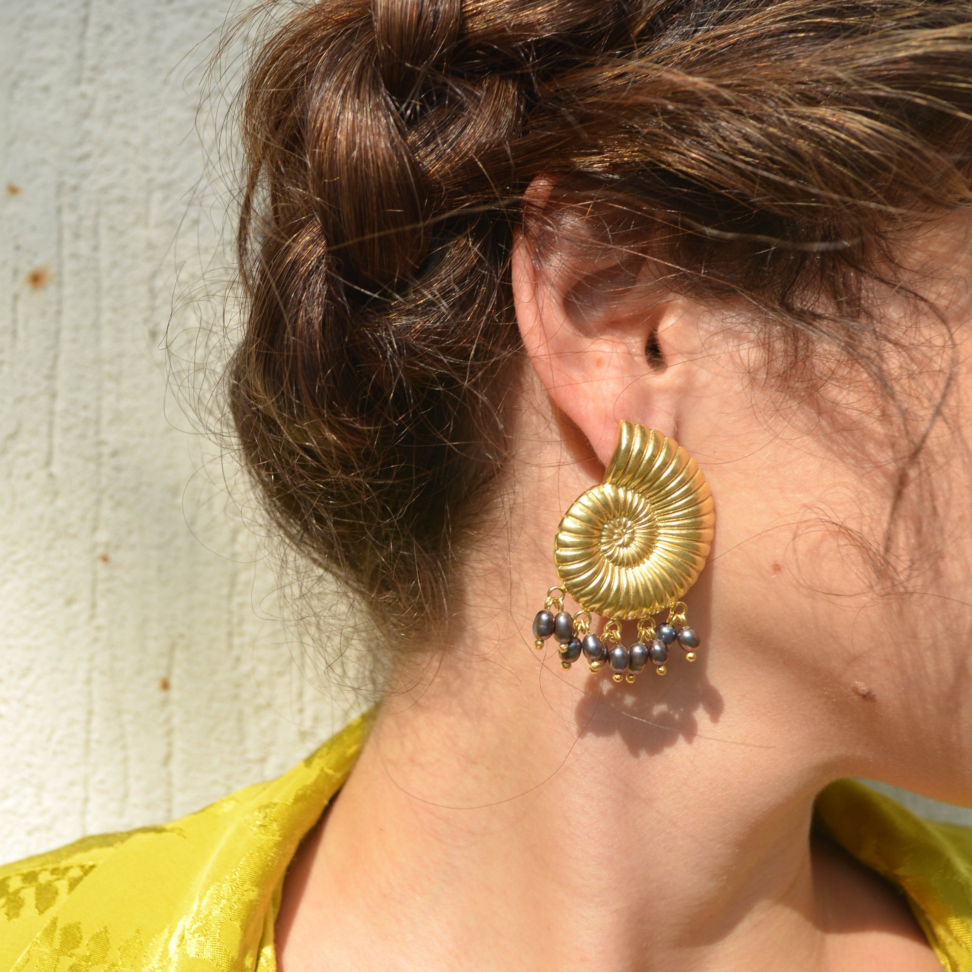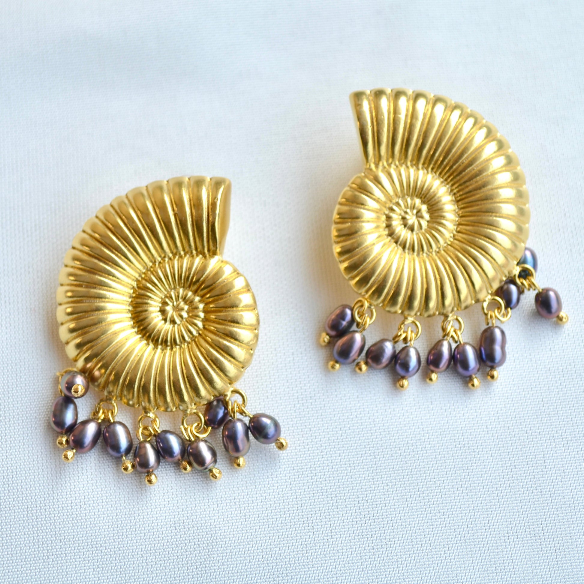 Tam bir ''wow'' küpe. Takın, çıkın ve günün yıldızı siz olun. Şıkır şıkır inciler ve deniz kabuğunun uyumu bu tasarımda resmen takan kişiyi büyülüyor.