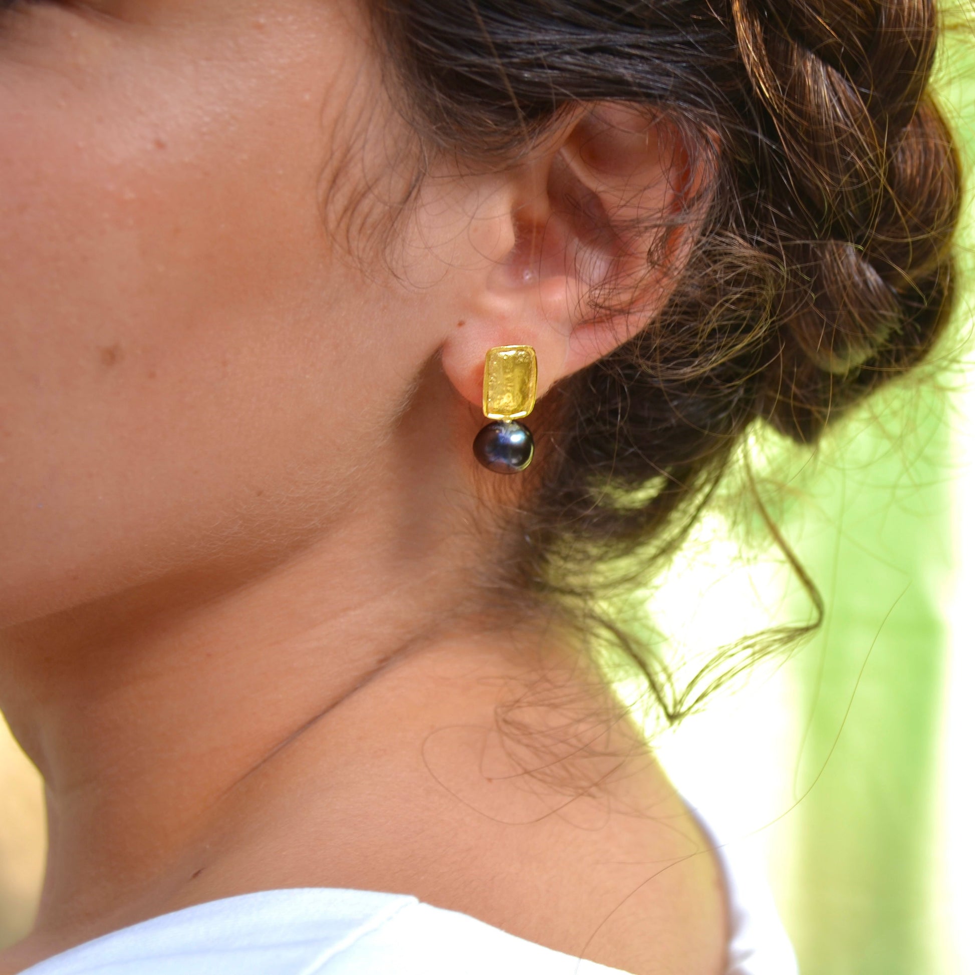 Fildişi inci size yeterince eğlenceli gelmedi mi? O zaman siyah incili bu Clementine küpemizi deneyin. Siyah kesinlikle yüzünüze bir farklılık katacak.