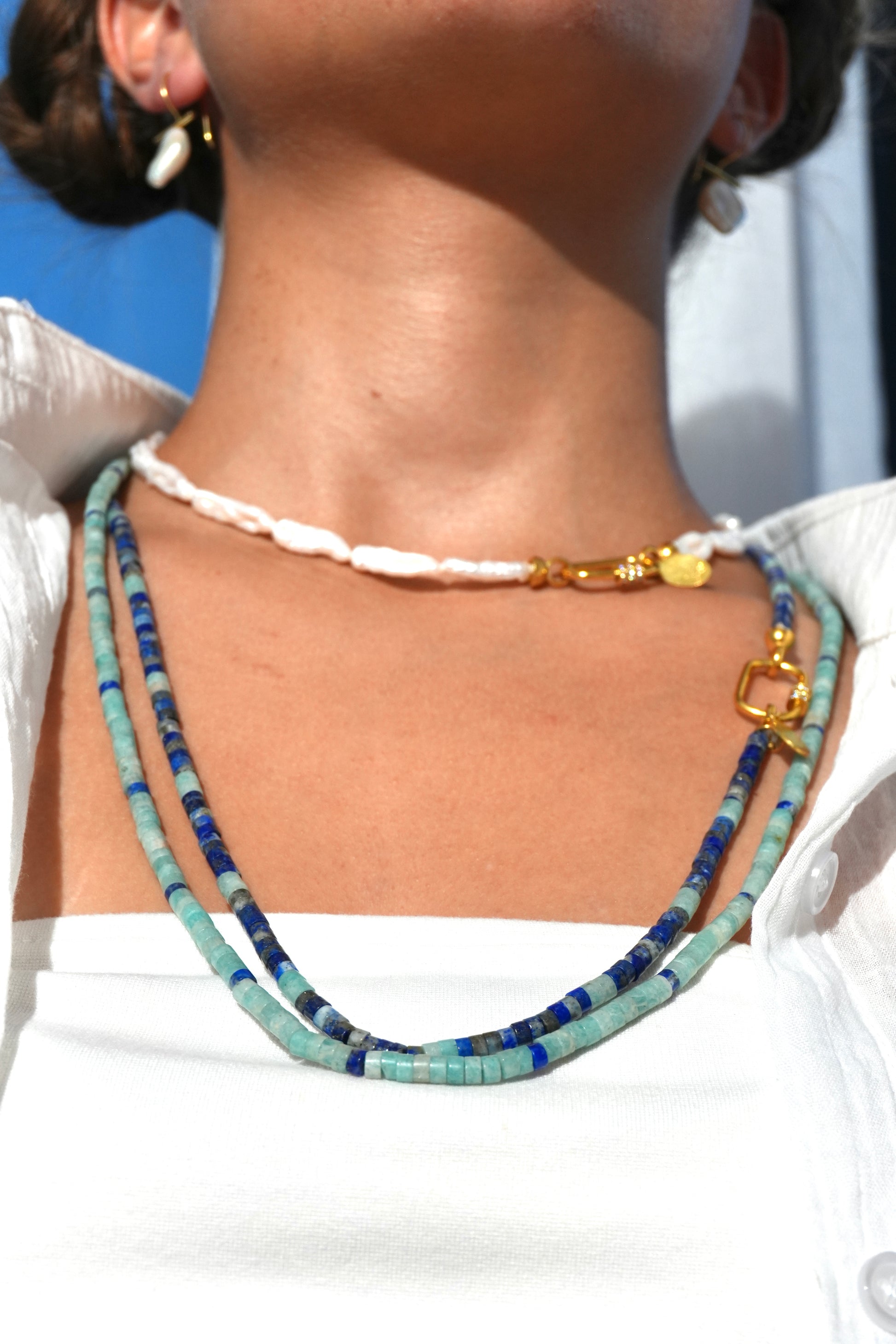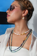 Bu lapis lazuli kolye sizin favori parçanız olacak. Neredeyse tüm kazaklarınızın, t-shirtlerinizin üzerine atıp çıkacaksınız. (Ürün tek parça halinde satılır. Fotoğraflarda farklı ürünlerimizle kombinlenmiş olabilir)